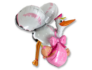 Шар G Шар 3D (62"/157 см) Фигура, Аист с малышом, Девочка, 1 шт. в уп.
