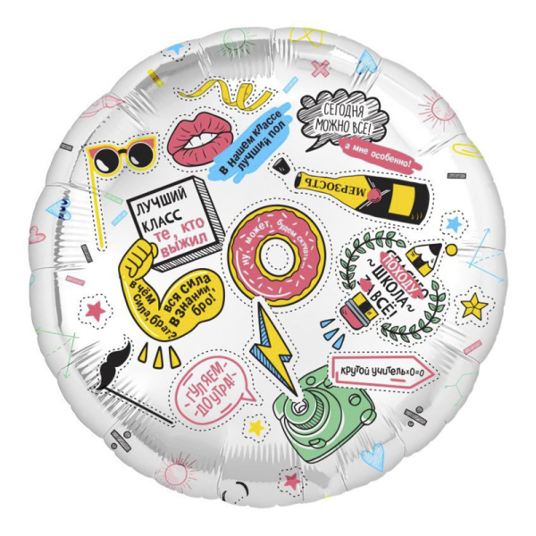 Фольгированный воздушный шар прекрасно подходит для оформления школьных выпускных, а также может использоваться в качестве самостоятельного подарка или в составе фонтана из шаров. Сочетайте с латексными и фольгированными оформительскими шариками.
