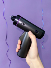 Аккумуляторный клеевой пистолет с ручной подачей клея. Нагревается до 100°C за 30 секунд, оснащён батареей 2000 мАч с быстрой зарядкой через Type-C за 3 часа. Клей дозируется курком, как в обычном пистолете. Размер 141?155 мм, вес 440 г. В комплекте 12 клеевых стержней