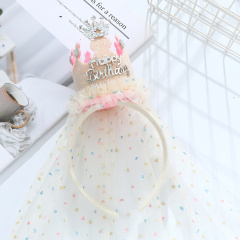 Ободок Корона, Happy Birthday, Кремовый, 1 шт.