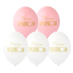 Высококачественный шар из натурального латекса. Розовые и белые шары пастель - матовый оттенок цвета. Шары с двусторонним шелкографическим текстом Всегда прекрасна! Золотой принт. Идеальный ассортимент для розничной продажи воздушных шариков и украшения праздника. Воздушные шары изготавливаются из экологически безопасного 100%-ного натурального латекса. В окружающей среде разлагаются на безопасные компоненты примерно с той-же скоростью, как обычные листья деревьев. После использования лопнуть и утилизировать как бытовой отход. Любовь, Валентинов День