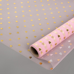 Фатин в рулоне (0,5*4,57 м) Золотые сердечки, Розовый, Металлик, 1 шт.