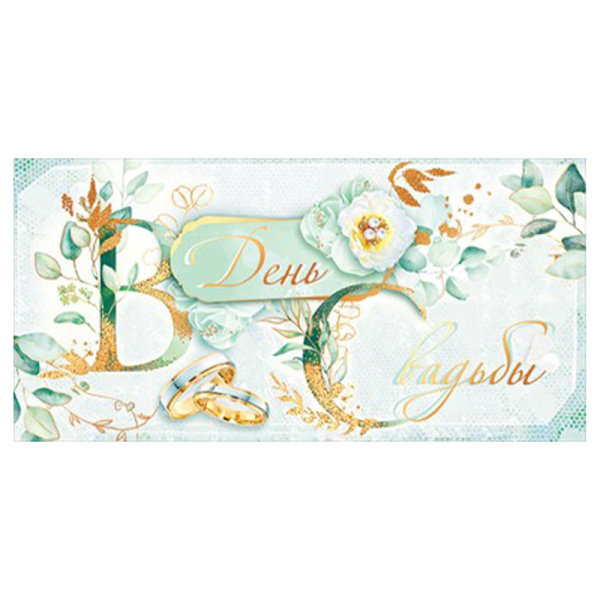 ---Конверт для денег "В день свадьбы!" Зеленый