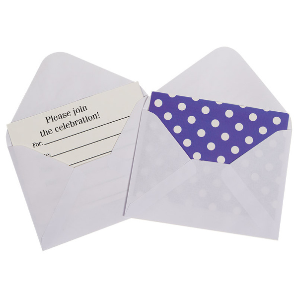 (Распродажа) Открытка пригласительная, Точки, с конвертом, синий, 12шт
