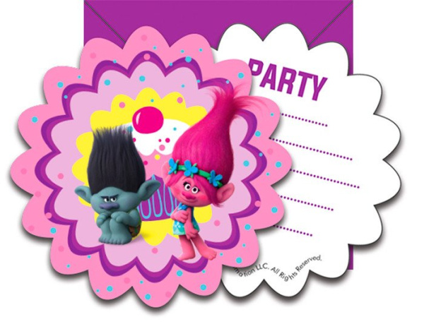 Открытка - это приятный знак внимания! Рекомендуем использовать с другими товарами коллекции «Тролли» для оформления вашего торжества в едином стиле!