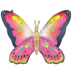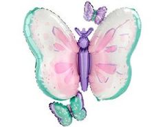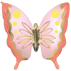 Сложный, объемный фольгированный шар в форме бабочки нежно-розового цвета. Рекомендуется наполнять гелием. Имеет встроенный клапан - что упрощает надувание. Тонкая миларовая (фольга на полиэтиленовой основе) пленка позволяет шарам не сдуваться от недели до одного месяца. Размер шара в надутом виде 30"/76cm w x 28"/71cm h.