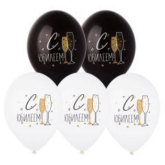 Высококачественный шар из натурального латекса. Ассорти из белых и черных шаров с красивым стильным дизайном "С Юбилеем!". Двухцветный принт с двух сторон. Идеальный ассортимент для розничной продажи воздушных шариков и украшения праздника. Воздушные шары изготавливаются из экологически безопасного 100%-ного натурального латекса. В окружающей среде разлагаются на безопасные компоненты примерно с той-же скоростью, как обычные листья деревьев. После использования лопнуть и утилизировать как бытовой отход.