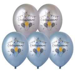 Шар с рисунком 14" Хром С Юбилеем 2цв