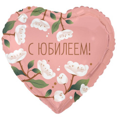 Шар (18"/46 см) Сердце, С Юбилеем, Нежные цветы, 1 шт. в уп.