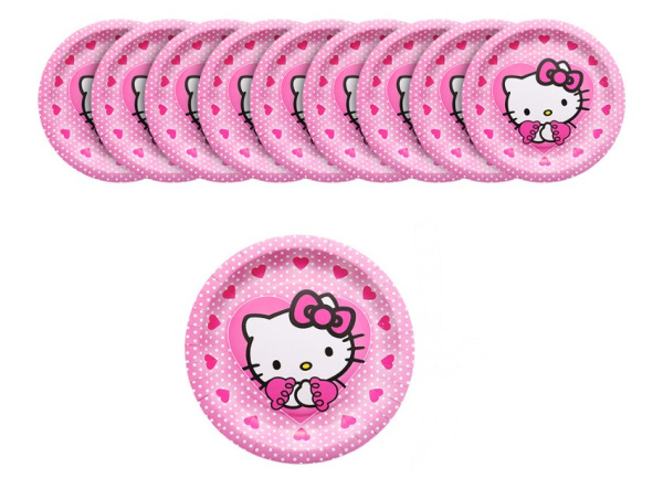 Тарелки (7''/18 см) Котенок розовый, 10 шт.