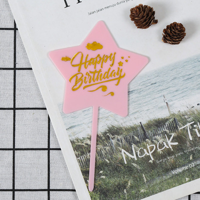 Топпер, Happy Birthday, Розовый/Золото, 1 шт.